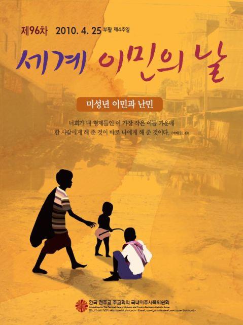 *Çѱ¹ õÁÖ±³È¸´Â ¿ì¸®³ª¶óÀÇ ¿Ü±¹ÀÎ ³ëµ¿Àڵ鿡 ´ëÇÑ Æ¯º°ÇÑ »ç¸ñÀû °ü½ÉÀ» ±â¿ïÀ̱â·Î ÇÏ°í ¡®À̹ÎÀÇ ³¯¡¯À» Áö³»°í ÀÖ´Ù. ÁÖ±³È¸ÀÇ 2000³â Ãá°è Á¤±â ÃÑȸ¿¡¼´Â ÇØ¸¶´Ù ¡®ÇØ¿Ü ¿øÁ¶ ÁÖÀÏ¡¯ÀÇ Àü(îñ) ÁÖÀÏÀ» ¡®À̹ÎÀÇ ³¯¡¯·Î Áö³»±â·Î ÇÏ¿´À¸³ª,