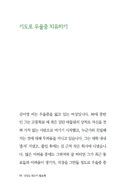 °Ç°­ÇÑ ±×¸®½ºµµÀÎÀ̶õ ½Å¾Ó°ú ÀÏ»óÀ» Á¶È­·Ó°Ô ¿µÀ§Çϸç, °Ç°­ÇÑ Á¤½Å°ú °Ç°­ÇÑ ½Å¾ÓÀ» °®Ãá ÀÌÀÏ °ÍÀÌ´Ù. ±×·± Àǹ̿¡¼­ ¿À´Ã³¯Ã³·³ ´©±º°¡ÀÇ Áø´Ü°ú Á¶¾ðÀÌ Àý½ÇÈ÷ ¿ä±¸µÇ´Â ºÒÈ®½Ç¼ºÀÇ ½Ã±â¿¡ ¿ì¸®ÀÇ ½Å¾Ó ¿ª½Ã ÀúÀÚ¿Í °°Àº Çý¾ÈÀÇ ·¹½¼ÀÌ ÇÊ¿äÇÔÀ» ±ú´Ý°Ô µÈ´Ù.