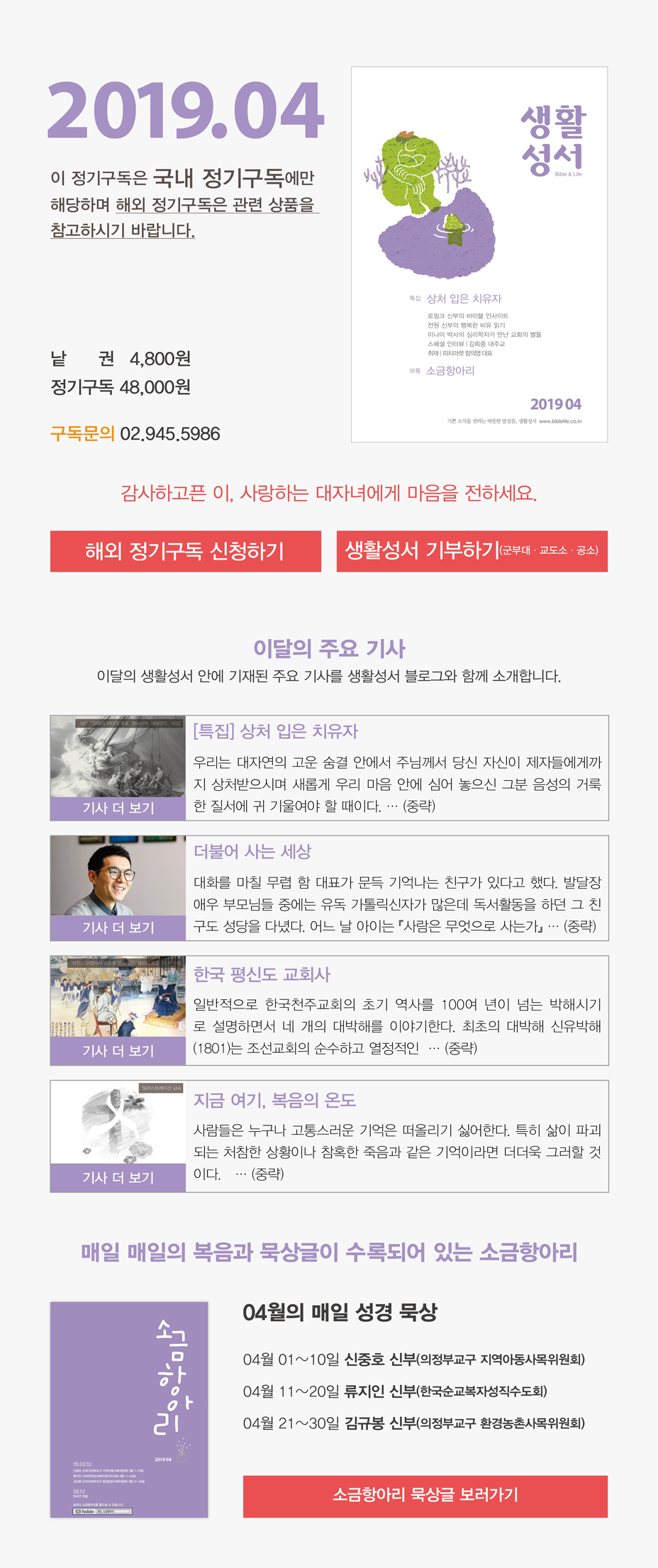»óó¿Í Ä¡À¯, Çູ°ú »ç¶ûÀÌ »ýȰ¼º¼­ 2019³â 4¿ùÈ£¿¡ ½Ç·ÁÀÖ½À´Ï´Ù. [±¸µ¶Çϱâ]