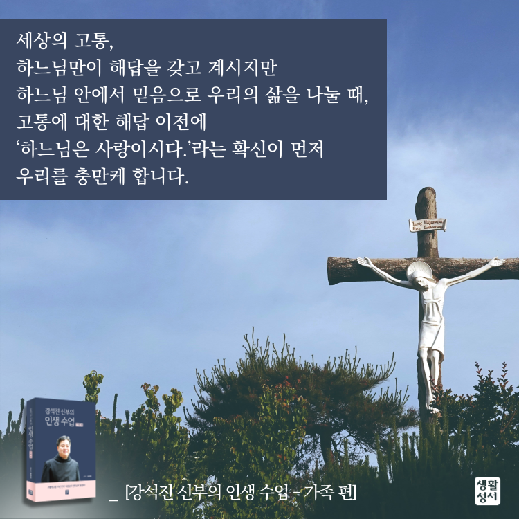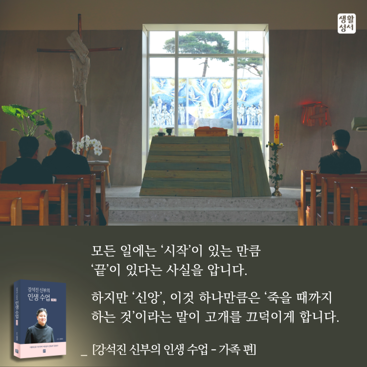 ¡º°­¼®Áø ½ÅºÎÀÇ Àλý ¼ö¾÷ °¡Á· Æí¡»¿¡´Â ³ª¸§ ¼º½ÇÈ÷ »ì¾Æ°¡´Â °©³²À»³à°¡ ÀÌÀ¯¸¦ ¾ËÁö ¸øÇÏ°í °Þ°Ô µÇ´Â °íÅ뽺·¯¿î »óȲ¿¡ ´ëÇØ¼­µµ ±íÀº ¹¬»óÀ» ÇÔ²² ³ª´«´Ù. ÇÏ´À´Ô²² ¿ÂÀüÈ÷ ÀÇŹÇÏ¸ç ¡®ÂøÇϰԡ¯ »ê »ç¶÷ÀÌ °Þ´Â ÀÌÀ¯¸¦ ¾Ë ¼ö ¾ø´Â °íÅë¿¡ ´ëÇØ µ¶ÀÚ¿Í ÇÔ²² ½Å¿¡°Ô ¹¯±âµµ ÇÑ´Ù. ÀúÀÚ´Â ±× °íÅë¿¡ ´ëÇÑ ÇØ¹ýÀº ÇÏ´À´Ô¸¸ÀÌ ¾Æ½ÃÁö¸¸, ¿ì¸®°¡ ÇÔ²²ÇÏ¸ç ¼­·Î µµ¿ï ¶§ °íÅë ¼Ó¿¡¼­µµ Èñ¹ÌÇϰԳª¸¶ ÇÏ´À´ÔÀÇ »ç¶ûÀ» ±ú´Ý°Ô µÈ´Ù´Â »ç½ÇÀ» ÀüÇÑ´Ù.