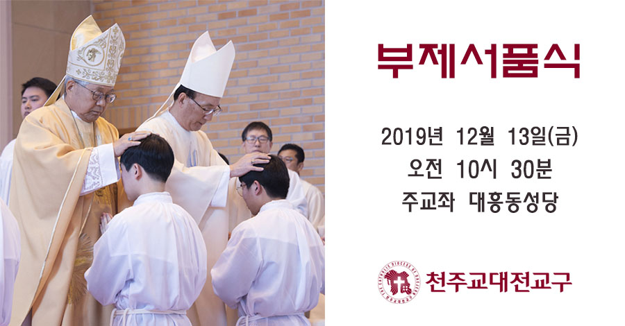 2019³â ºÎÁ¦¼­Ç°½ÄÀÌ 12¿ù 13ÀÏ(±Ý) ¿ÀÀü 10½Ã 30ºÐ ±³±¸Àå À¯Èï½Ä ¶óÀÚ·Î ÁÖ±³´Ô ÁÖ·Ê·Î ÁÖ±³Á ´ëÈﵿ¼º´ç¿¡¼­ °ÅÇàµË´Ï´Ù.